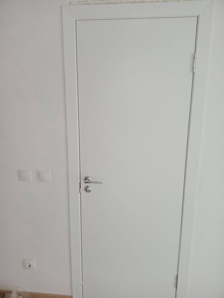 Установим дверную коробку, ручку, наличники. Навесим дверное полотно. Проверим, чтобы ничего не скрипело и замки открывались. Уберём за собой. Работу выполним за 2–3 часа.